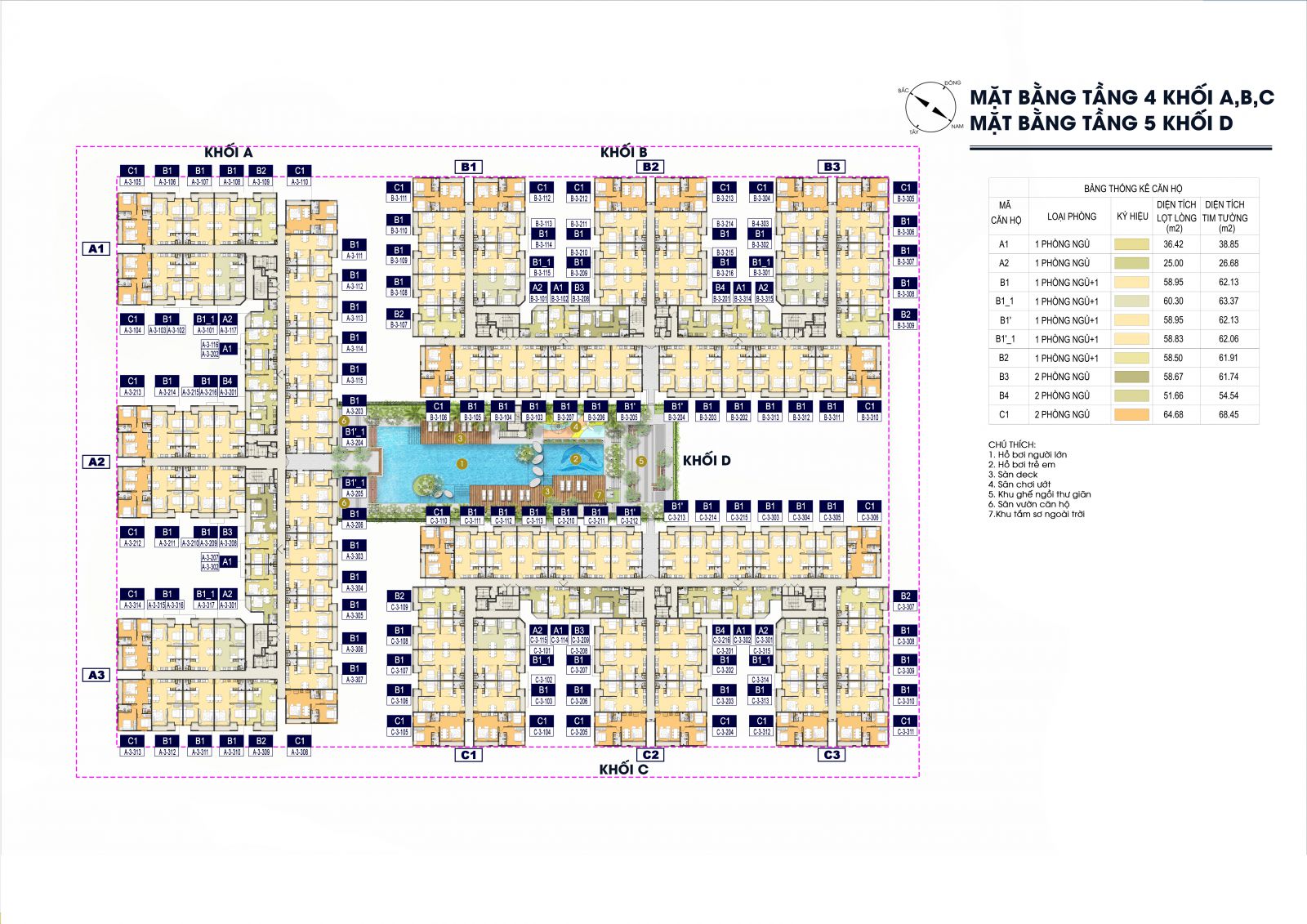 1040 căn (Block A: 368 căn, Block B: 336 căn, Block C: 336 căn) |
